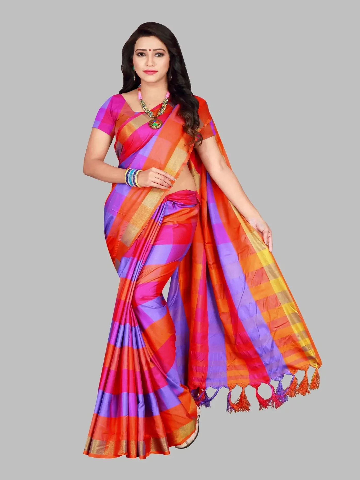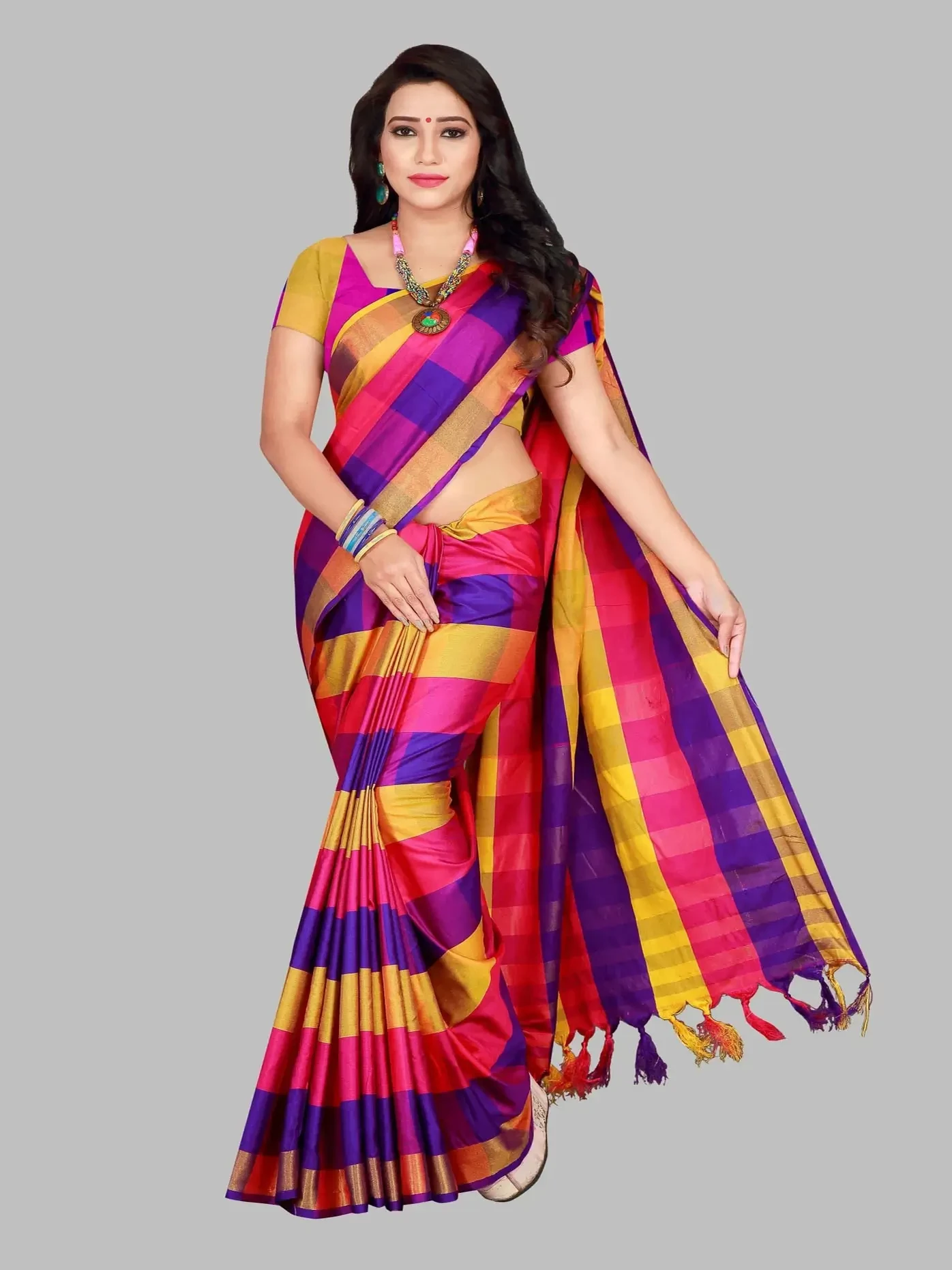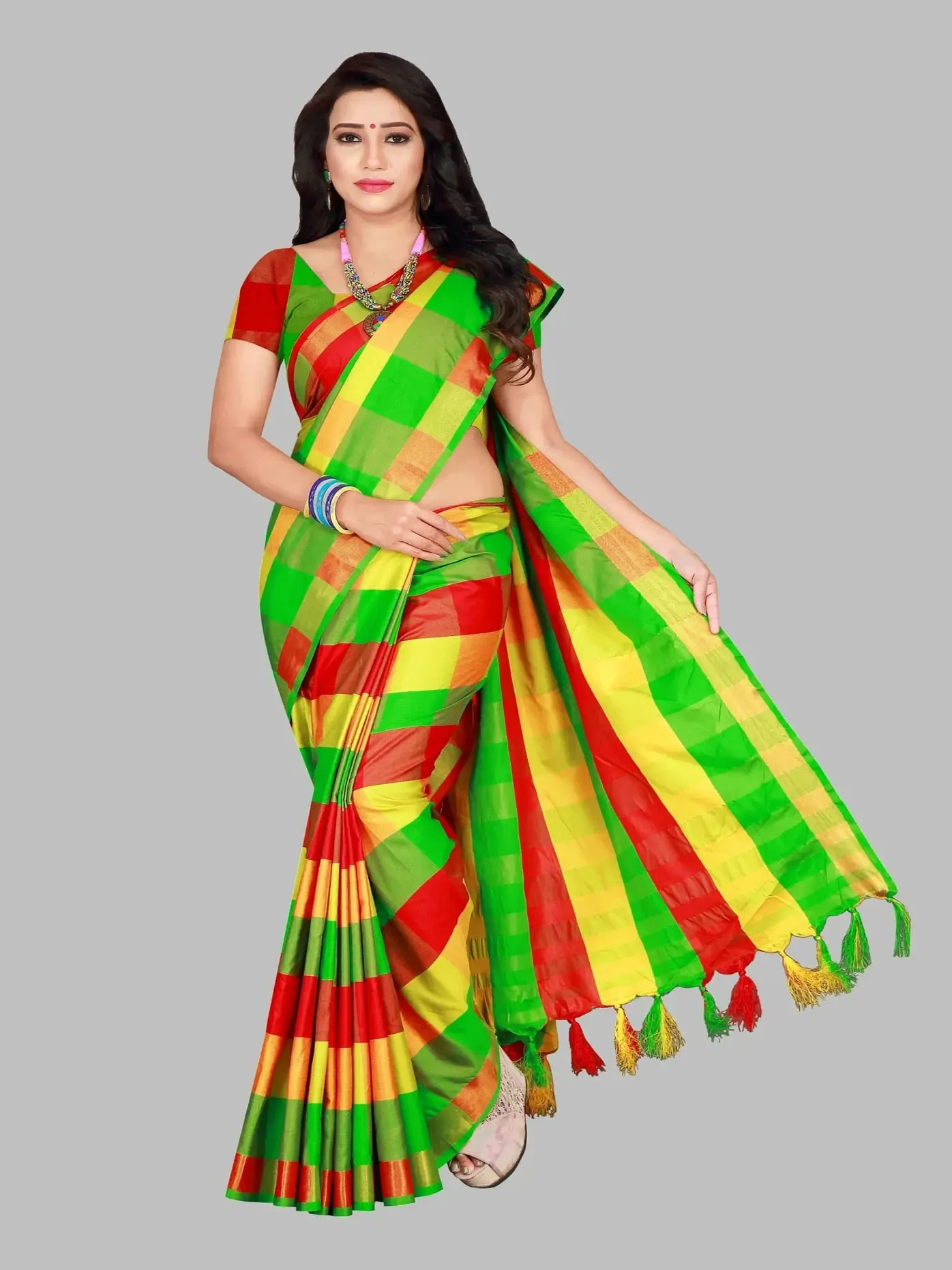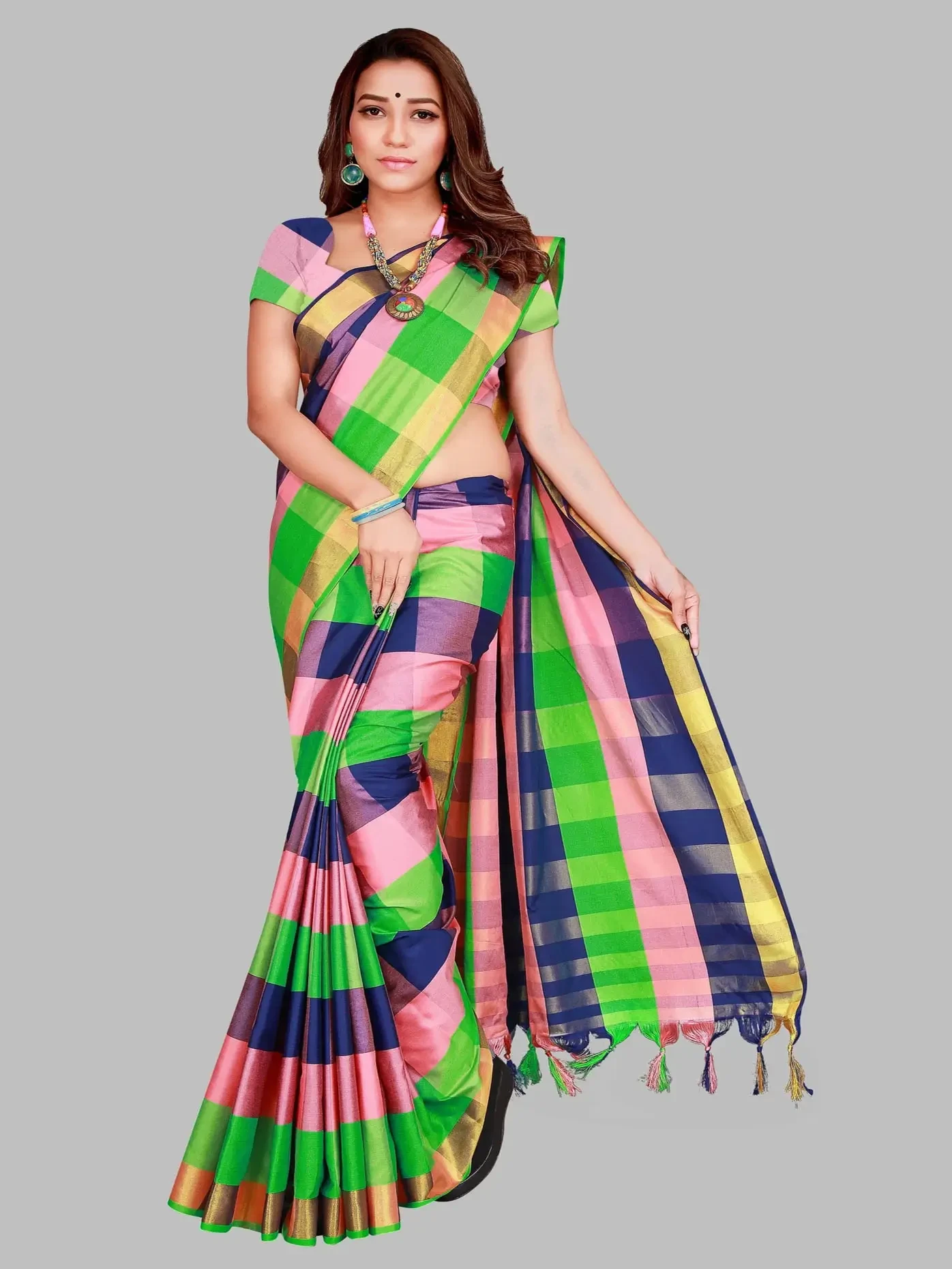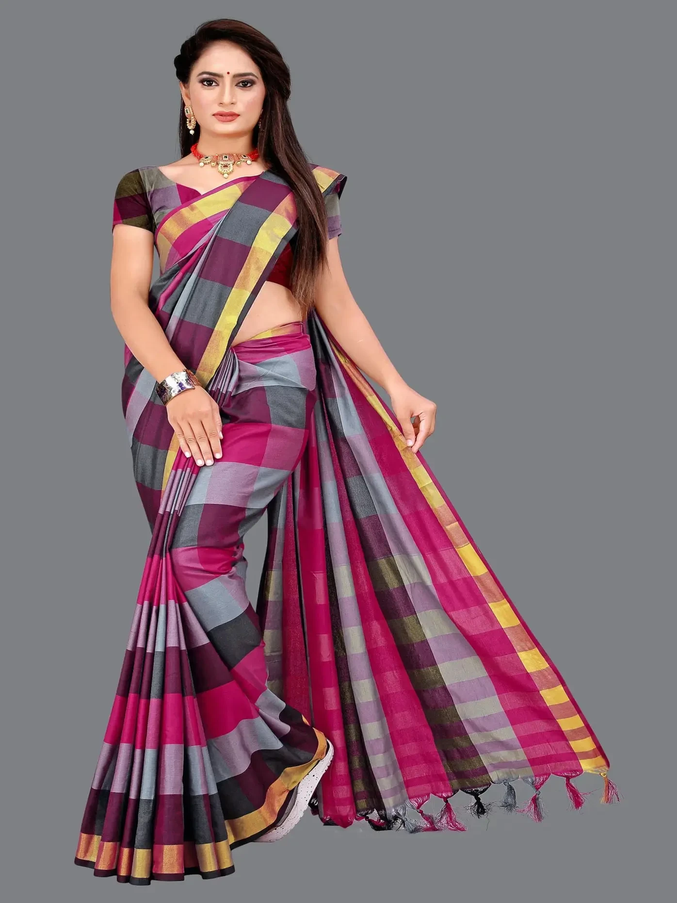 Checkered Daily Wear Cotton Silk Saree