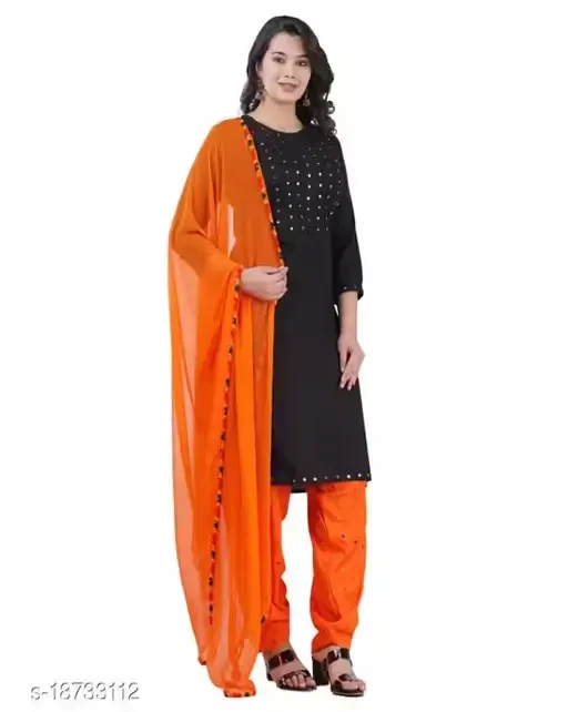 Name: Embroidery and mirror work Black stylish kurti with Patiala Salwar and Dupatta