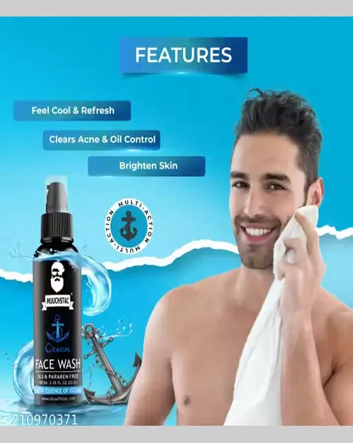 Name: Muuchstac Ocean Face Wash for Men | Fight Acne & Pimples, Brighten Skin, Clears Dirt, Oil Control, Refreshing Feel - Multi-Action Formula | 100 ml