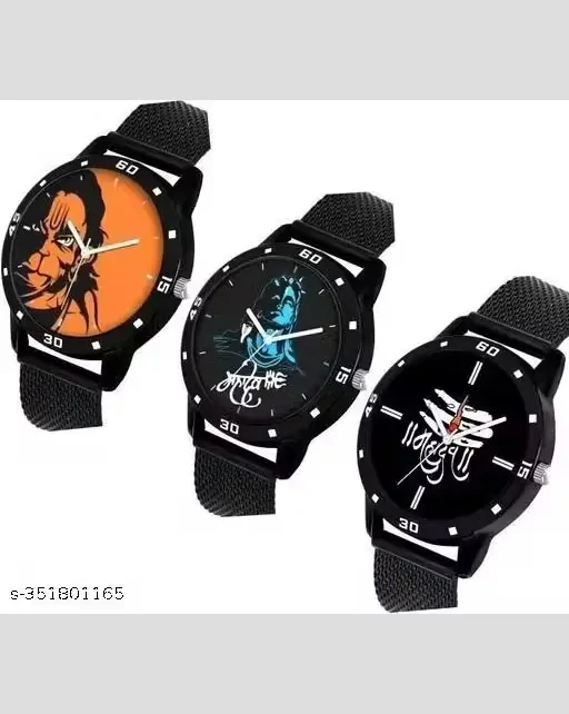 Name: Pack Of 3 Black Designer Professional PU Analog Watch