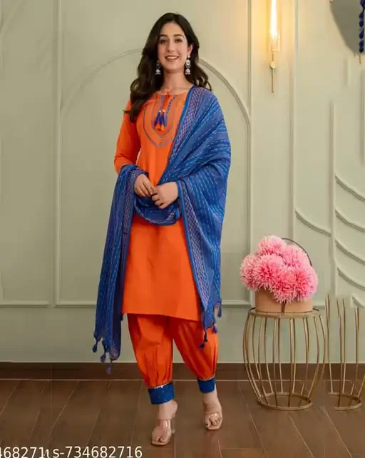 Name: Embroidered Cotton Kurta Afghani salwar kurta dupatta set| Cotton Kurta Salwar Dupatta Set| Embroidered Kurta salwar and dupatta set| Afghani salwar kurta dupatta set.