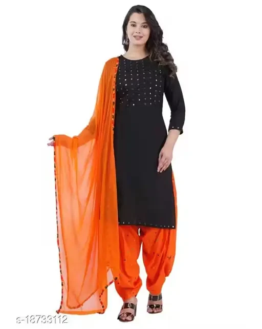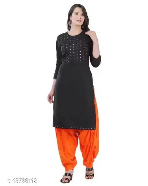 Name: Embroidery and mirror work Black stylish kurti with Patiala Salwar and Dupatta