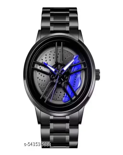 Name: Men's Car Wheel Watch with Spinning Car Rim Hub Design|| Analog Stainless Steel || Quartz Movement|| Water Resistant, Scratch Resistant