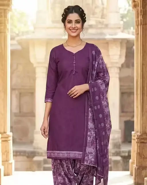 Beautiful Suit look pretty like never before.Wearing this Wine Colour Suit with Wine Coloured Geometric Printed Cotton Blend Bottom and Wine Coloured Cotton Blend Dupatta.Suit has also decorative work like Solid with Fancy Buttons.This beautiful suit features a classy Printed Work all over,which makes it a smart pick for all occasions. One can wear this Suit in different styles. One can wear it occasionally or casually.