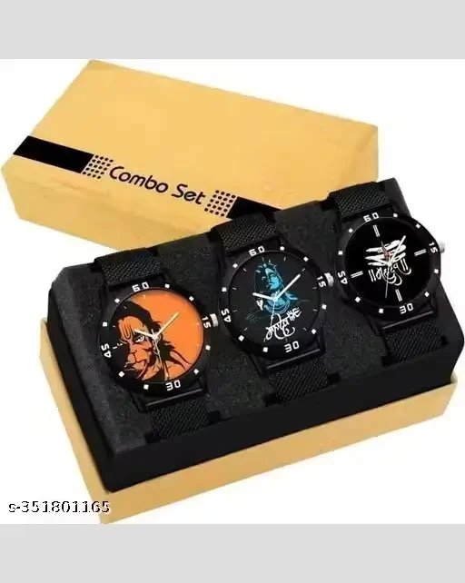 Name: Pack Of 3 Black Designer Professional PU Analog Watch